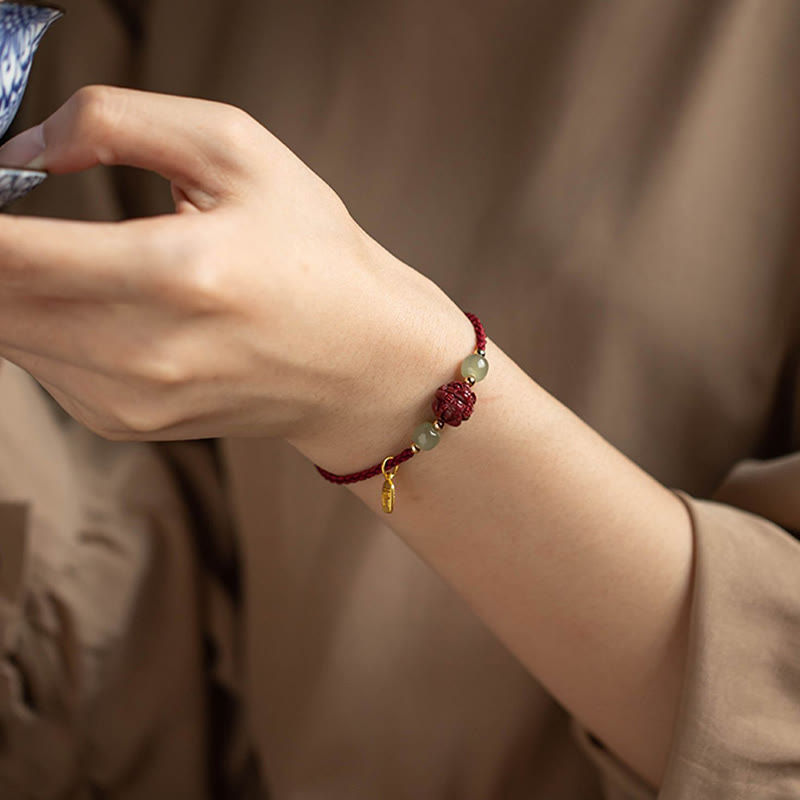 Natural Cinnabar Chinese Zodiac Hetian Jade Fu Character Luck Rope Bracelet