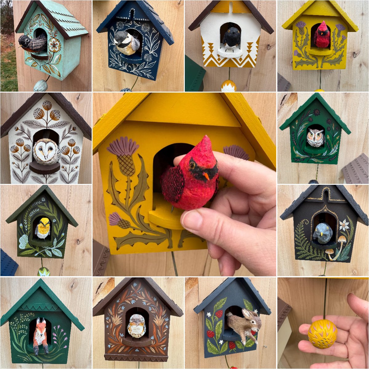 Transform any room into a cozy, storybook-inspired haven with this handcrafted Whimsical Kinetic Art Birdhouse Wall Decor. Each piece feels like a scene lifted from a woodland fairytale—complete with a charming bird (or critter!) that gently sways back and forth, bringing warmth, whimsy, and life to your walls.